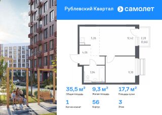 Строим кварталы для жизни с заботой о будущем. Предлагается 1-комнатная квартира комфорт-класса 35,54 кв.м в корпусе 56 на 3 этаже, в ЖК "Рублевский Квартал"