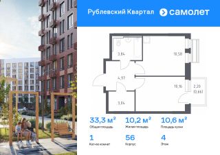 Строим кварталы для жизни с заботой о будущем. Предлагается 1-комнатная квартира комфорт-класса 33,25 кв.м в корпусе 56 на 4 этаже, в ЖК "Рублевский Квартал"