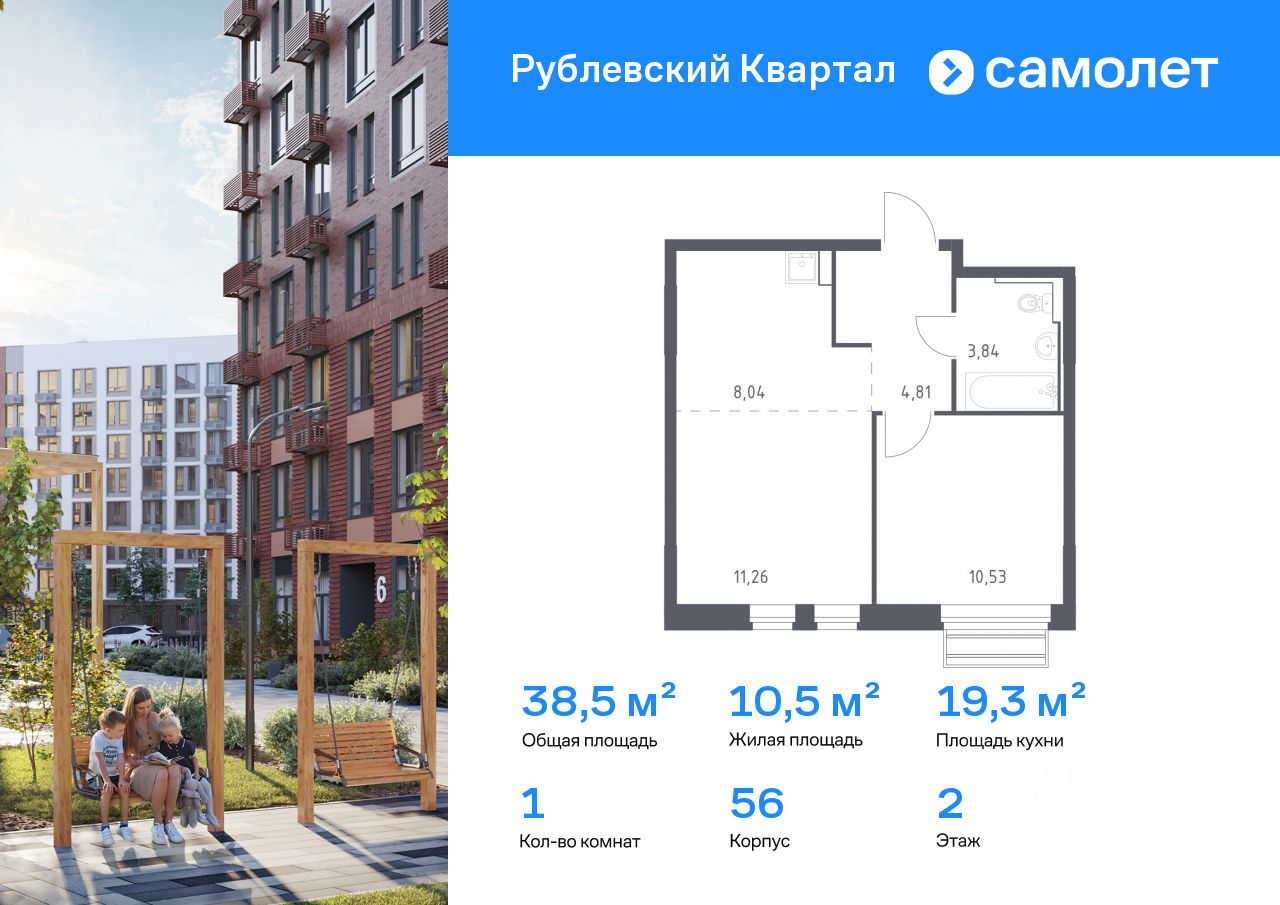 Строим кварталы для жизни с заботой о будущем. Предлагается 1-комнатная квартира комфорт-класса 38,48 кв.м в корпусе 56 на 2 этаже, в ЖК "Рублевский Квартал"