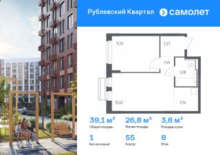 Строим кварталы для жизни с заботой о будущем. Предлагается 1-комнатная квартира комфорт-класса 39,08 кв.м в корпусе 55 на 8 этаже, в ЖК "Рублевский Квартал"
