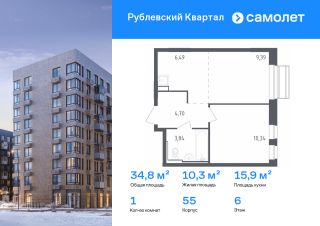 Строим кварталы для жизни с заботой о будущем. Предлагается 1-комнатная квартира комфорт-класса 34,76 кв.м в корпусе 55 на 6 этаже, в ЖК "Рублевский Квартал"