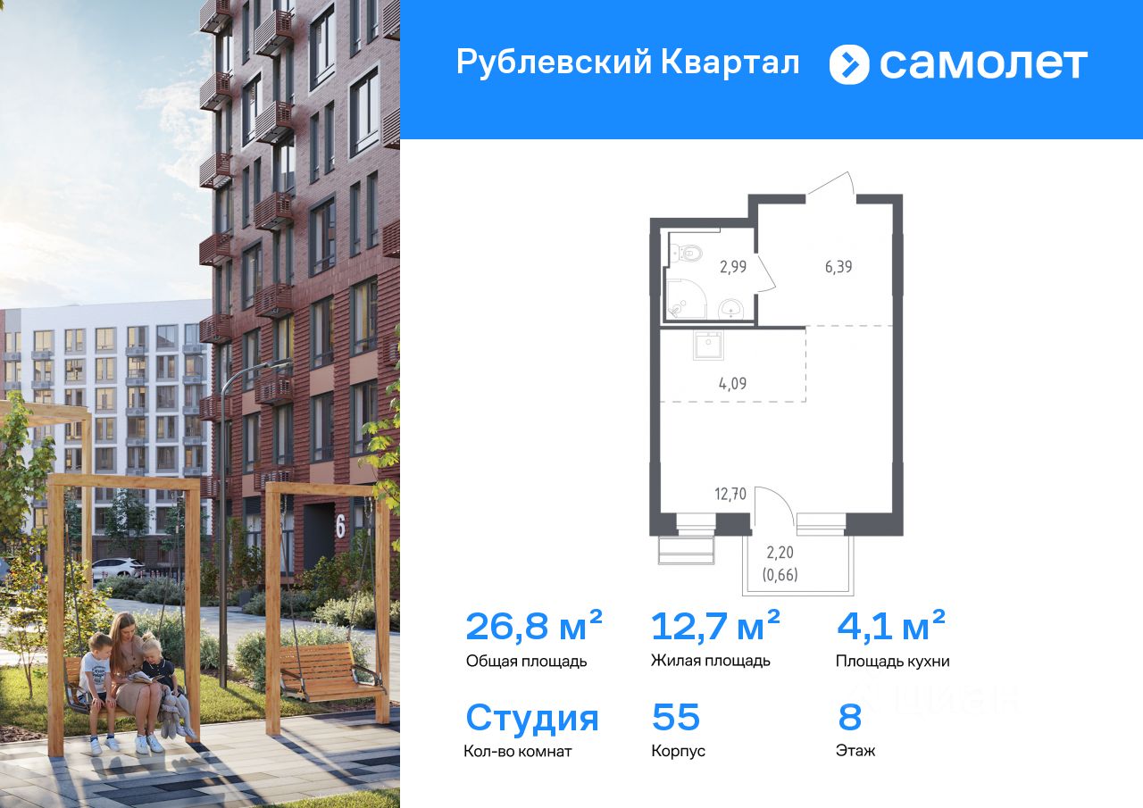 Строим кварталы для жизни с заботой о будущем. Предлагается квартира студия комфорт-класса 26,83 кв.м в корпусе 55 на 8 этаже, в ЖК "Рублевский Квартал"