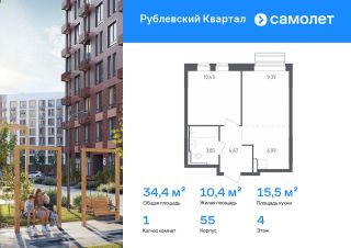 Строим кварталы для жизни с заботой о будущем. Предлагается 1-комнатная квартира комфорт-класса 34,4 кв.м в корпусе 55 на 4 этаже, в ЖК "Рублевский Квартал"