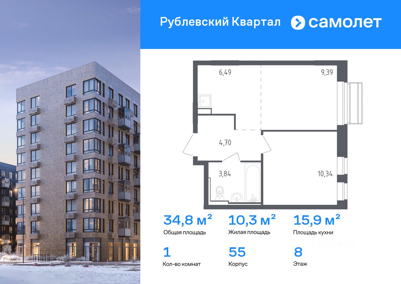 Строим кварталы для жизни с заботой о будущем. Предлагается 1-комнатная квартира комфорт-класса 34,76 кв.м в корпусе 55 на 8 этаже, в ЖК "Рублевский Квартал"