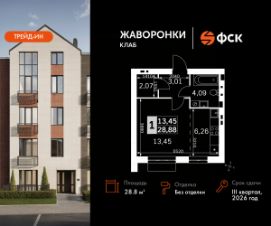 Продаётся студия номер 116 общей площадью 28.88 кв.м на 2-м этаже 4 этажного дома. Без отделки.