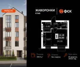 Продаётся студия номер 122 общей площадью 28.89 кв.м на 3-м этаже 4 этажного дома. Без отделки.