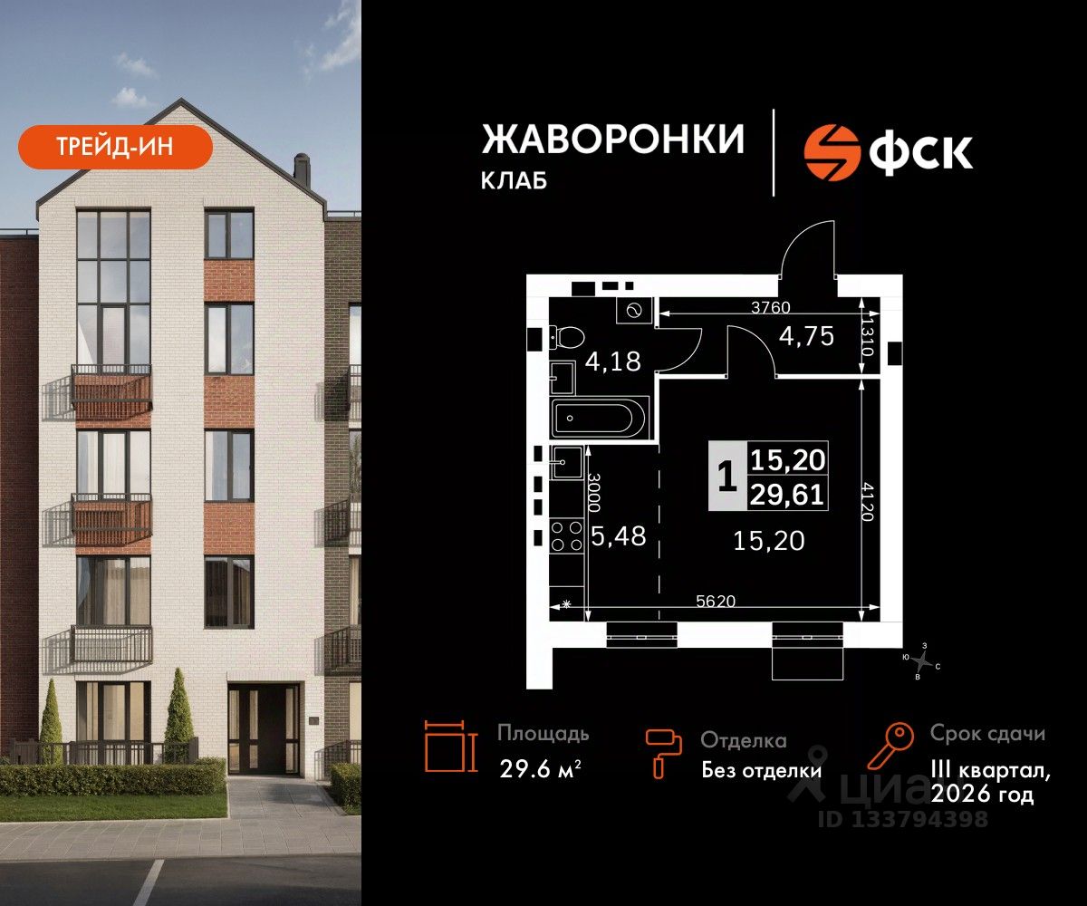 Продаётся студия номер 150 общей площадью 29.61 кв.м на 3-м этаже 4 этажного дома. Без отделки.