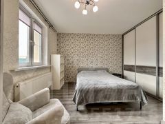 Просторная комната 12,8 кв.м. с глубоким шкафом-купе во всю стену, кухонный гарнитур с духовым шкафом, посудомоечной машиной и плитой на две комфорки, плита газовая. Установлены фильтры для воды.