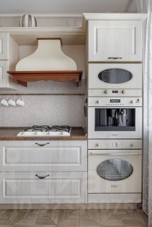 Кухня оборудованна современной бытовой техникой: встроенная кофе машина и тд