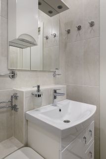 Санузел разделен на две части: ванная комната, отдельно — туалет.