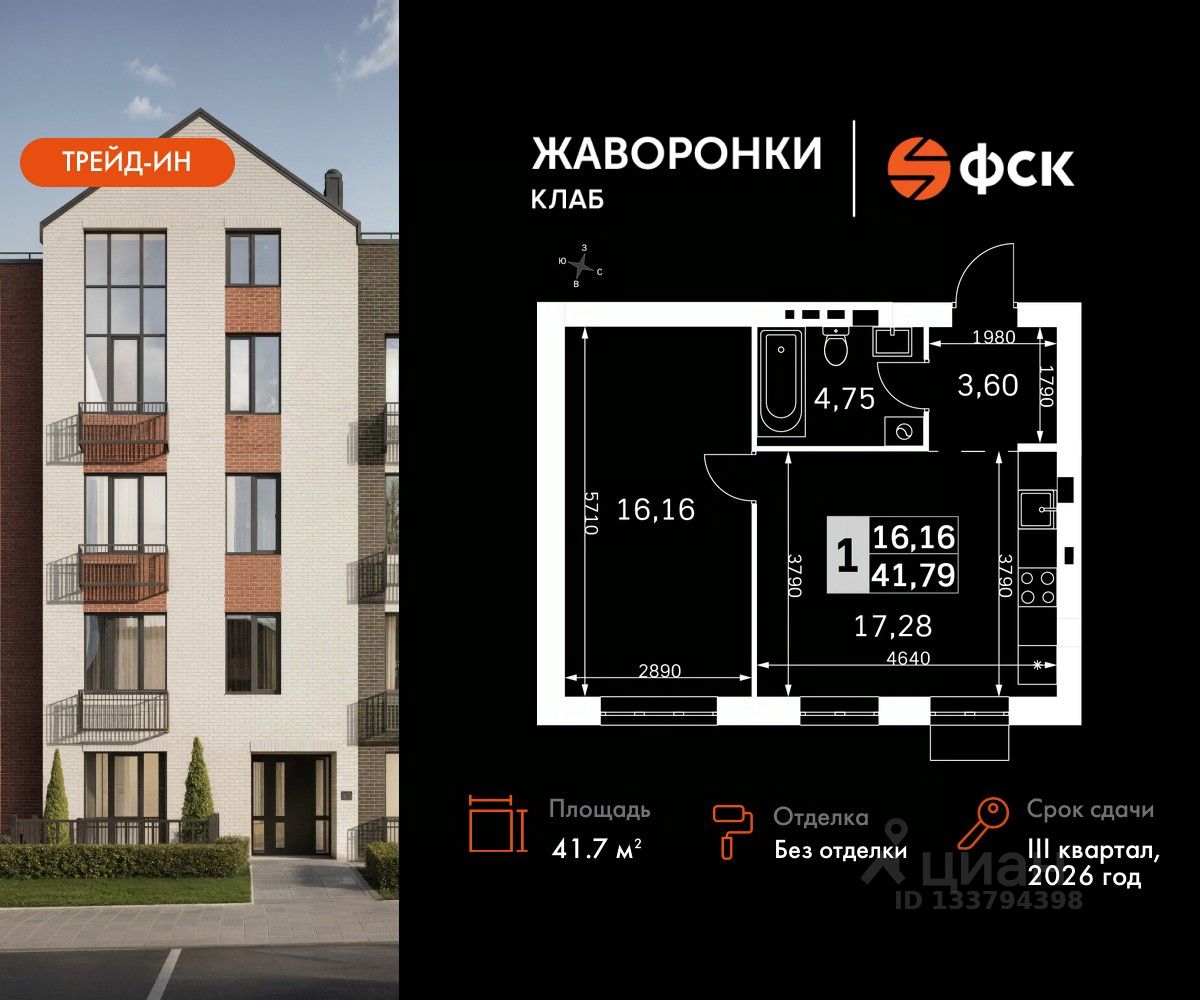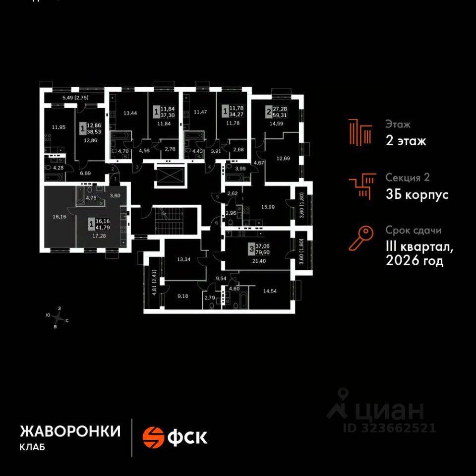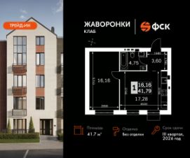 Продаётся 1-к квартира номер 19 общей площадью 41.79 кв.м на 2-м этаже 4 этажного дома. Без отделки.