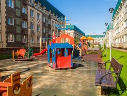 Дом располагается в центре ЖК и хорошо изолирован соседними домами от шума Минского шоссе и железнодорожных путей.