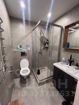 Не смотря на то что это студия, зона спальни отделена стеклянной перегородкой. Просторная лоджия, в которой теплый пол. Теплый пол также в сан.узле.