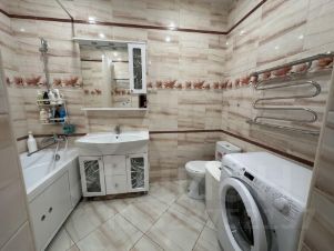 Площадь квартиры с учетом большой лоджии-террасы составляет более 60 м2!!! Каждое помещение спроектировано для максимального удобства и комфорта. Полноценный квадратный холл-прихожая - 9,7 м2, оборудован вместительным шкафом для хранения одежды и обуви, габариты помещения позволяют дополнительно установить небольшой диванчик или пуф, а может быть и дополнительную систему хранения в виде гардеробной. Ванная комната - 5,1 м2, комфортно вмещает стиральную машинку, полноценную ванну и небольшую систему хранения. Кухня-столовая - 11,2 м2, уютное пространство для приготовления еды и отдыха, с возможностью выхода на лоджию. Жилая комната - 24 м2, светлая и просторная, оборудована кондиционером, по желанию может быть разделена на разные зоны отдыха, так же есть выход на лоджию. И наконец лоджия - 6,9 м2, обратите внимание на плане квартиры - конфигурация помещения в виде просторной террасы, утеплена, полностью заменены окна, оборудована системой "теплого пола", может использоваться в качестве кабинета или места для отдыха в любое время года.