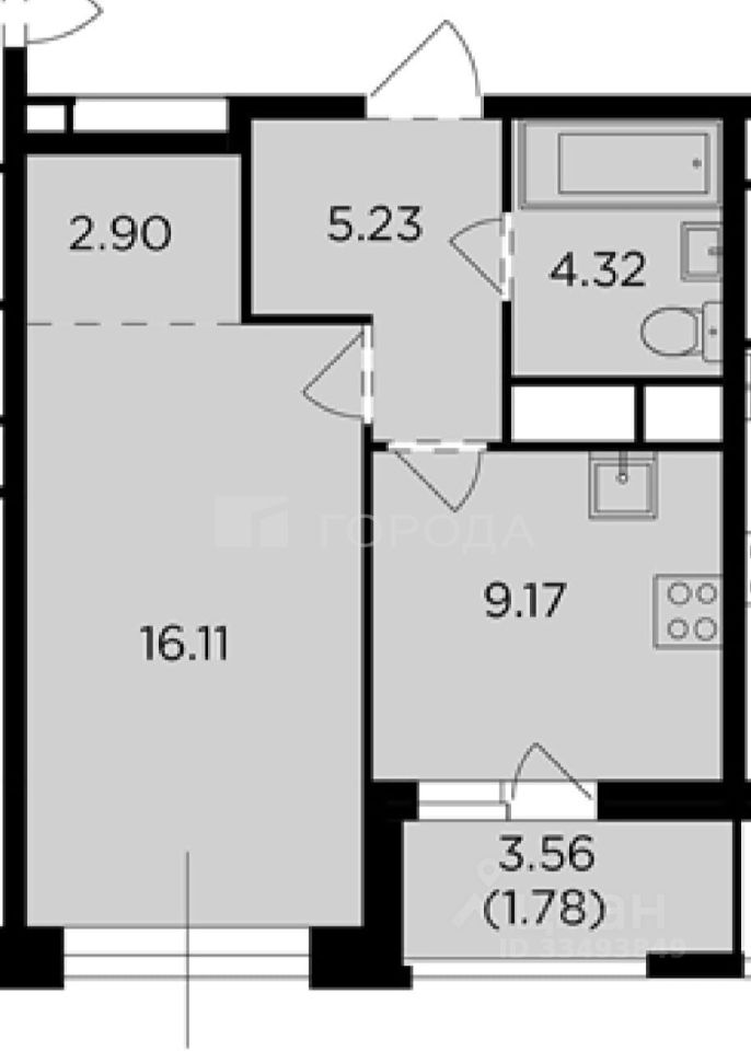 - Кухня 9,17 м2 с выходм на балкон 3,56 м2