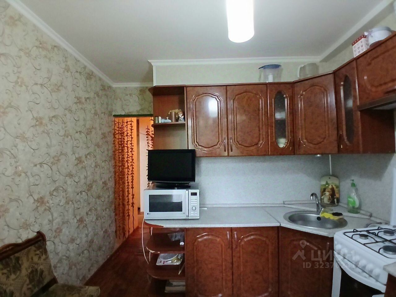 Мебель и техника остаётся: кухонный гарнитур, газовая плита, диван, кровать, в прихожей встроенный шкаф, холодильник, стиральная машина.