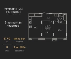 Продается двухкомнатная квартира в девятиэтажном монолитном доме жилого комплекса "Резиденции Сколково".