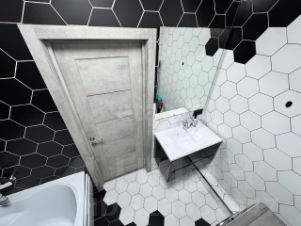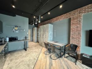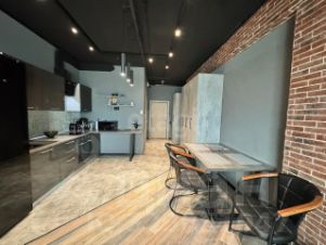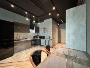 • спальня (двухспальная кровать) и кухня-гостиная со встроенной техникой, вместительный шкафы.