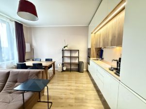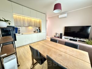 Планировка: просторная кухня-гостиная, спальня с гардеробной и лоджией, санузел, прихожая.