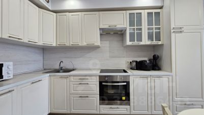 Просторная кухня с качественным кухонным гарнитуром, посудомоечной машиной и холодильником — всё, что нужно для семейных обедов и ужинов.