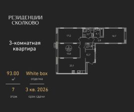 Продается трехкомнатная квартира в девятиэтажном монолитном доме жилого комплекса "Резиденции Сколково".