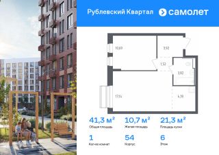 Строим кварталы для жизни с заботой о будущем. Предлагается 1-комнатная квартира комфорт-класса 41,27 кв.м в корпусе 54 на 6 этаже, в ЖК "Рублевский Квартал"