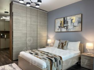 -спальная зона: двуспальная кровать с подъёмным механизмом (доп хранение), комод прикроватные тумбы ТВ диагональ 55, сплит система, электрические шторы блекаут