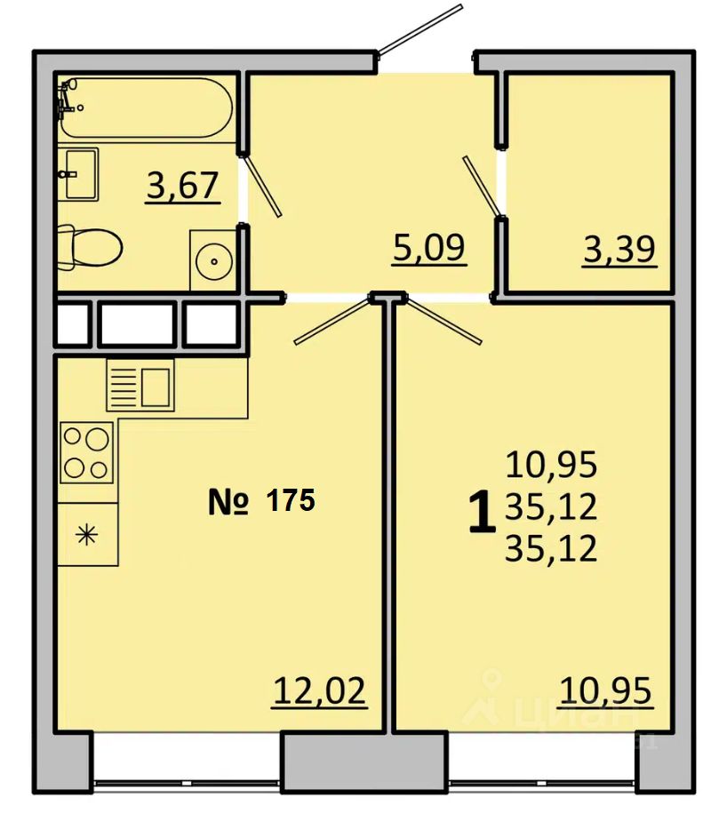 Продаётся 1-комнатная квартира, дом сдан (Корпус 1.3), общей площадью 35.1 кв.м. (данные Росреестра), на 17 этаже, без отделки.