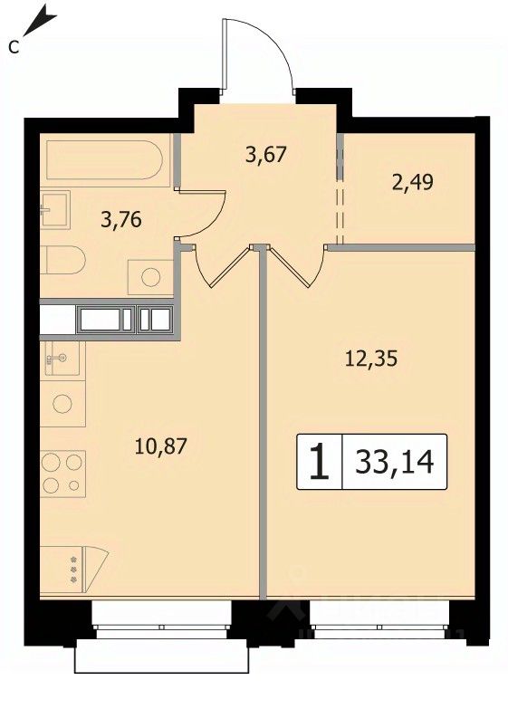 Общая площадь33,14 м²