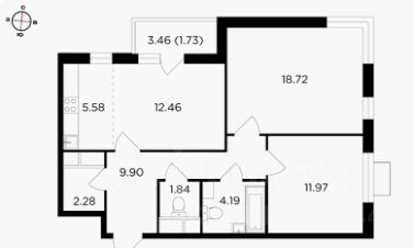 Квартира расположена на 13 этаже 24-ти этажного монолитного дома. Общая площадь 66 кв.м.(без учета балкона), застекленный балкона 3,5 кв.м., жилая площадь 43,1 кв.м, комнаты изолированы 12,5-18,7-11,9 кв.м., кухня-ниша 6,0 кв.м., с/у раздельный, предусмотрена гардеробная комната, квартира без отделки.