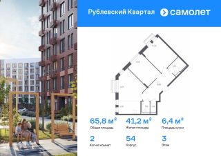 Строим кварталы для жизни с заботой о будущем. Предлагается 2-комнатная квартира комфорт-класса 65,75 кв.м в корпусе 54 на 3 этаже, в ЖК "Рублевский Квартал"