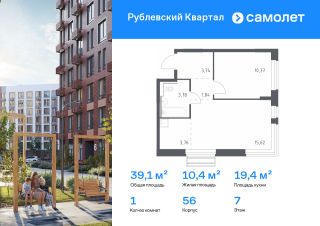 Строим кварталы для жизни с заботой о будущем. Предлагается 1-комнатная квартира комфорт-класса 39,11 кв.м в корпусе 56 на 7 этаже, в ЖК "Рублевский Квартал"