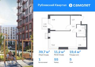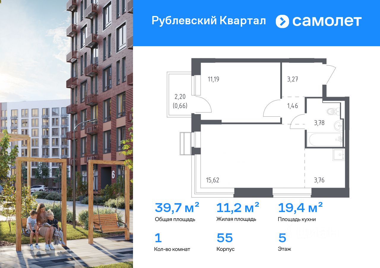 Строим кварталы для жизни с заботой о будущем. Предлагается 1-комнатная квартира комфорт-класса 39,74 кв.м в корпусе 55 на 5 этаже, в ЖК "Рублевский Квартал"