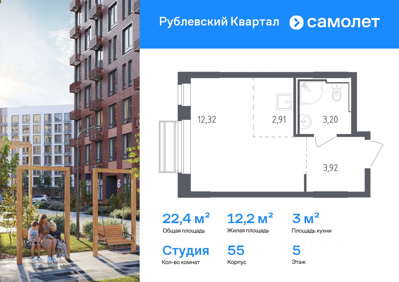 Строим кварталы для жизни с заботой о будущем. Предлагается квартира студия комфорт-класса 22,35 кв.м в корпусе 55 на 5 этаже, в ЖК "Рублевский Квартал" Квартира с чистовой отделкой. Доступность дополнительных опций уточняйте у застройщика. Приобрести квартиру возможно по специальным акциям от застройщика, с текущими условиями акций можно ознакомиться в блоке "Акций". Цена динамическая и может отличаться, уточняйте актуальность у застройщика. Жилой комплекс "Рублевский Квартал" на западе Москвы окружен Подушкинским и Дубковским лесами. Рядом ж/д станция Усово и МЦД-1 "Одинцово". На территории комплекса — школа, детский сад, поликлиника и торговый центр. Архитектура с переменной этажностью от 3 до 12 этажей гармонично вписывается в природу. Закрытый двор-парк, кленовые аллеи и игровые зоны создают уют. Квартиры с отделкой и живописными видами на лес.