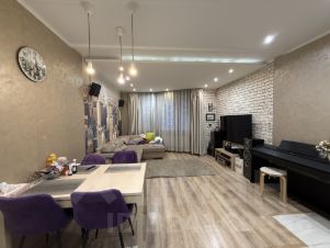 Продается просторная двухкомнатная квартира (евротрешка) в современном кирпичном доме 2012 года постройки. Общая площадь — 69,5 кв. м, жилая — 33 кв. м, кухня-гостиная 31,56 кв. м. , два санузла. Квартира расположена на 6 этаже 24-этажного дома с высотой потолков 2,8 метра. Всего в доме 2 пассажирских и 3 грузовых лифта, в доме консьерж и камеры, шикарная входная группа.