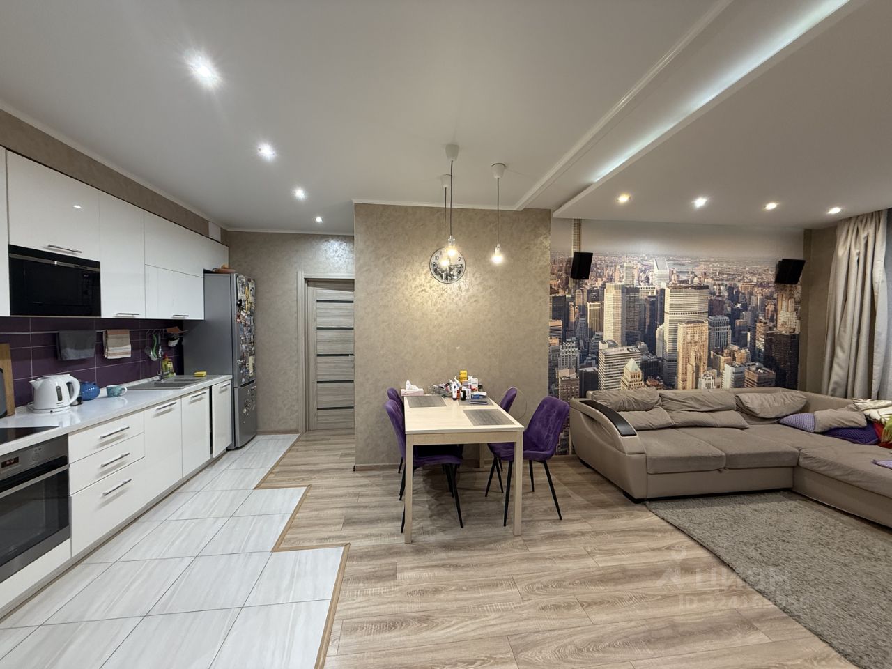 В квартире выполнен качественный евроремонт, установлена современная кухня с встроенной техникой. Просторная кухня, два совмещенных санузла, большая лоджия-кабинет с видом на тихий двор.