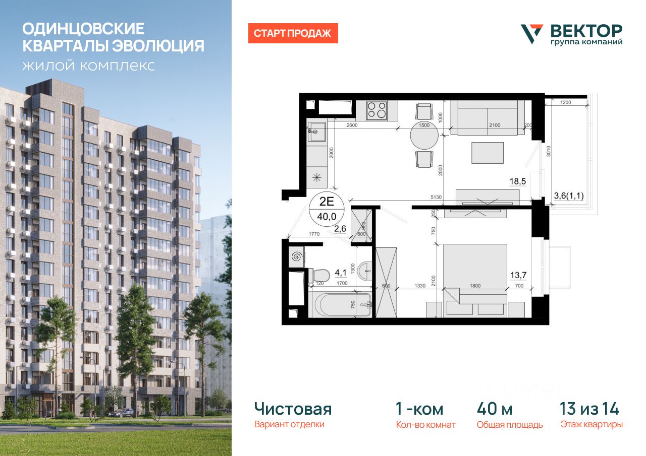 Продается 1-комн. кв-ра площадью 40 кв.м на 13 этаже 14 этажного дома в ЖК "Одинцовские кварталы Эволюция" от Группа компаний Вектор. Жилой комплекс "Одинцовские кварталы Эволюция" расположен в окружении живописного леса и исторических стародачных поселков, создавая атмосферу загородного уюта и культурной ценности. Этот район всегда считался престижным: здесь жили ученые, писатели и деятели искусства, что придает комплексу особый характер.