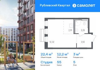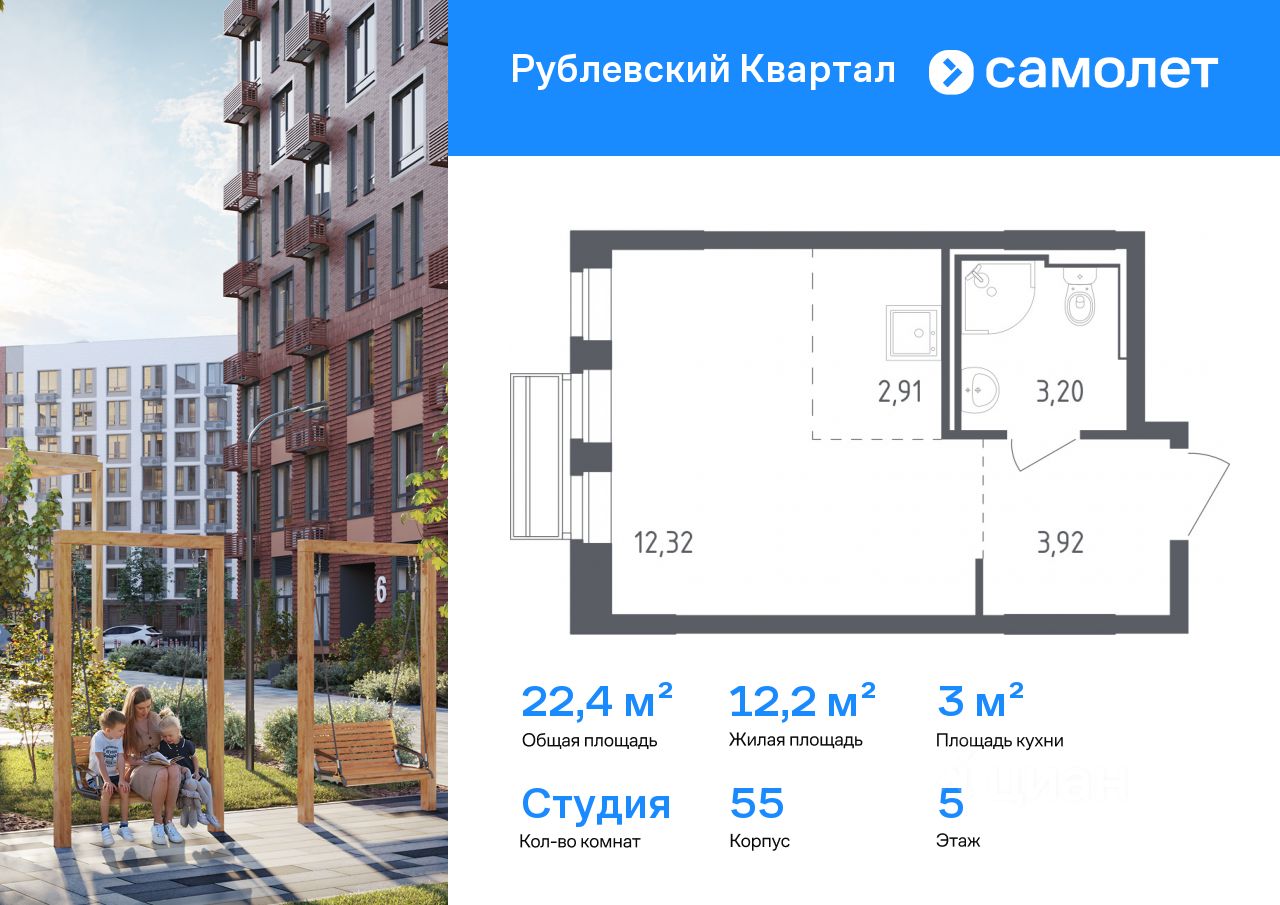 Строим кварталы для жизни с заботой о будущем. Предлагается квартира студия комфорт-класса 22,35 кв.м в корпусе 55 на 5 этаже, в ЖК "Рублевский Квартал"