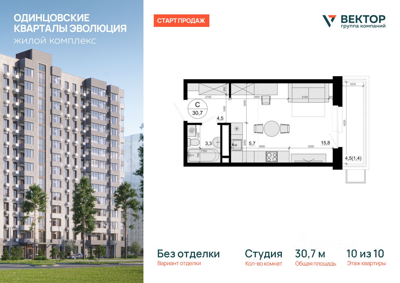 Продается квартира студия площадью 30,7 кв.м на 10 этаже 10 этажного дома в ЖК "Одинцовские кварталы Эволюция" от Группа компаний Вектор. Жилой комплекс "Одинцовские кварталы Эволюция" расположен в окружении живописного леса и исторических стародачных поселков, создавая атмосферу загородного уюта и культурной ценности. Этот район всегда считался престижным: здесь жили ученые, писатели и деятели искусства, что придает комплексу особый характер.