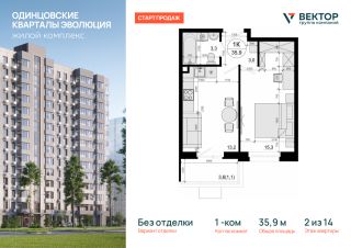 Продается 1-комн. кв-ра площадью 35,9 кв.м на 2 этаже 14 этажного дома в ЖК "Одинцовские кварталы Эволюция" от Группа компаний Вектор. Жилой комплекс "Одинцовские кварталы Эволюция" расположен в окружении живописного леса и исторических стародачных поселков, создавая атмосферу загородного уюта и культурной ценности. Этот район всегда считался престижным: здесь жили ученые, писатели и деятели искусства, что придает комплексу особый характер.