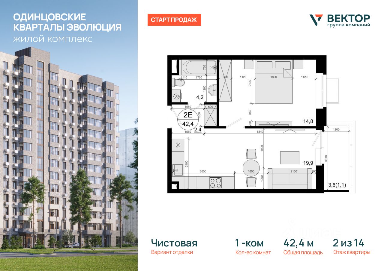 Продается 1-комн. кв-ра площадью 42,4 кв.м на 2 этаже 14 этажного дома в ЖК "Одинцовские кварталы Эволюция" от Группа компаний Вектор. Жилой комплекс "Одинцовские кварталы Эволюция" расположен в окружении живописного леса и исторических стародачных поселков, создавая атмосферу загородного уюта и культурной ценности. Этот район всегда считался престижным: здесь жили ученые, писатели и деятели искусства, что придает комплексу особый характер.