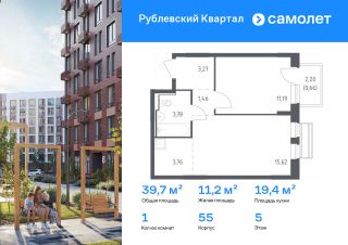Строим кварталы для жизни с заботой о будущем. Предлагается 1-комнатная квартира комфорт-класса 39,74 кв.м в корпусе 55 на 5 этаже, в ЖК "Рублевский Квартал"