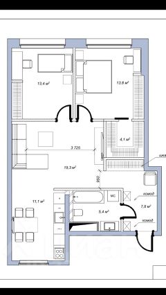 Общая площадь: 76,7 кв.м.