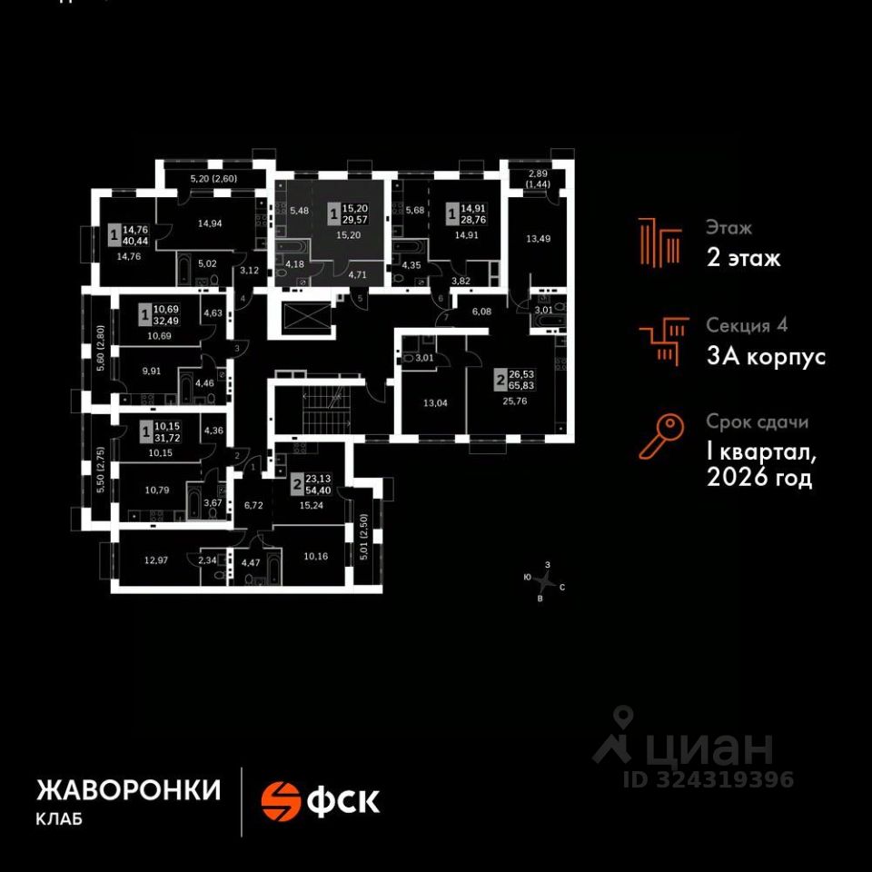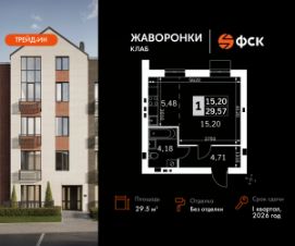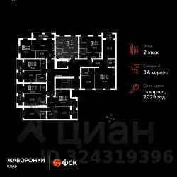 Продаётся студия номер 62 общей площадью 29.57 кв.м на 2-м этаже 4 этажного дома. Без отделки.