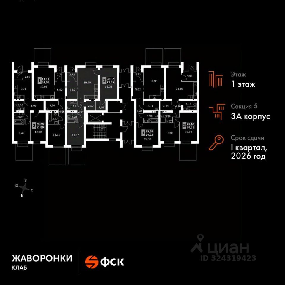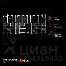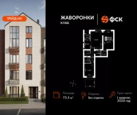 Продаётся 2-к квартира номер 81 общей площадью 73.55 кв.м на 1-м этаже 4 этажного дома. Без отделки.