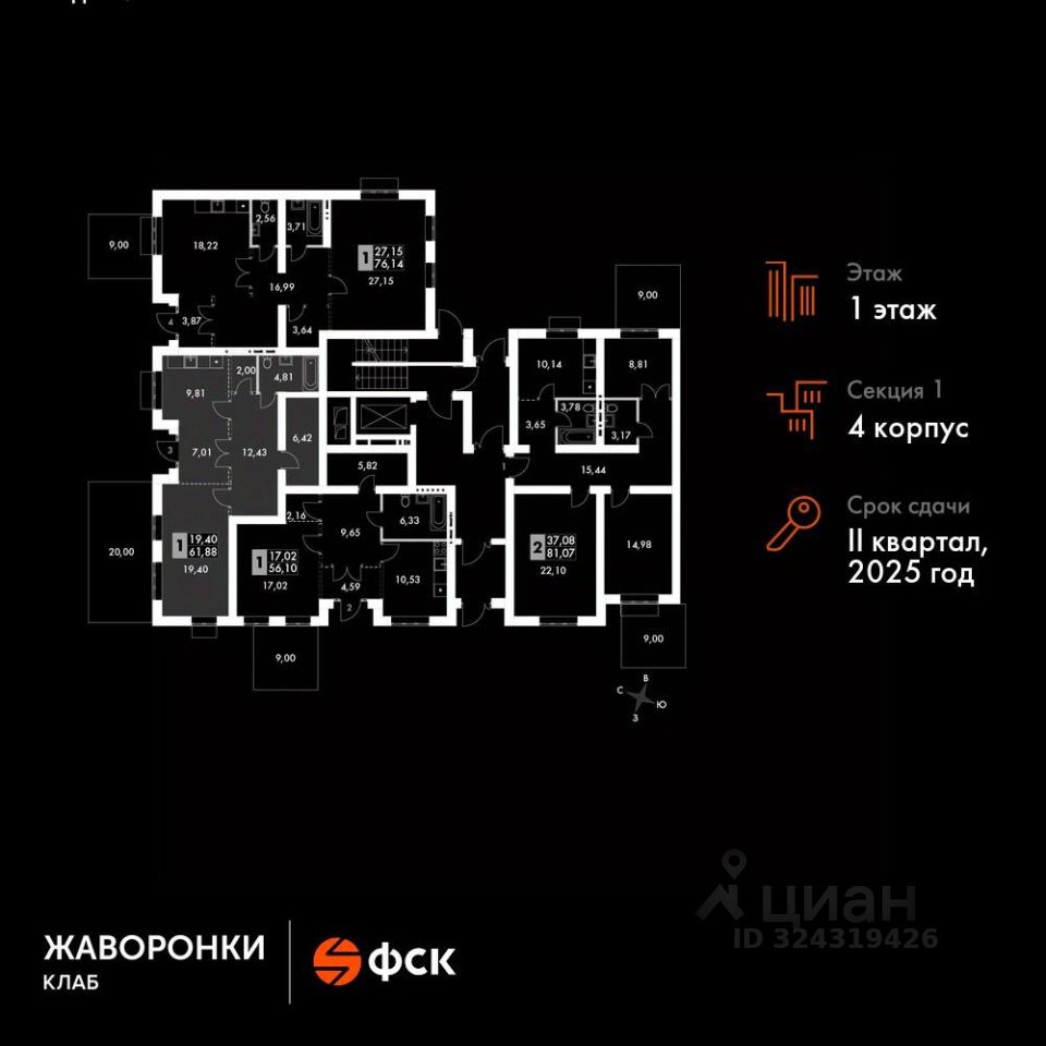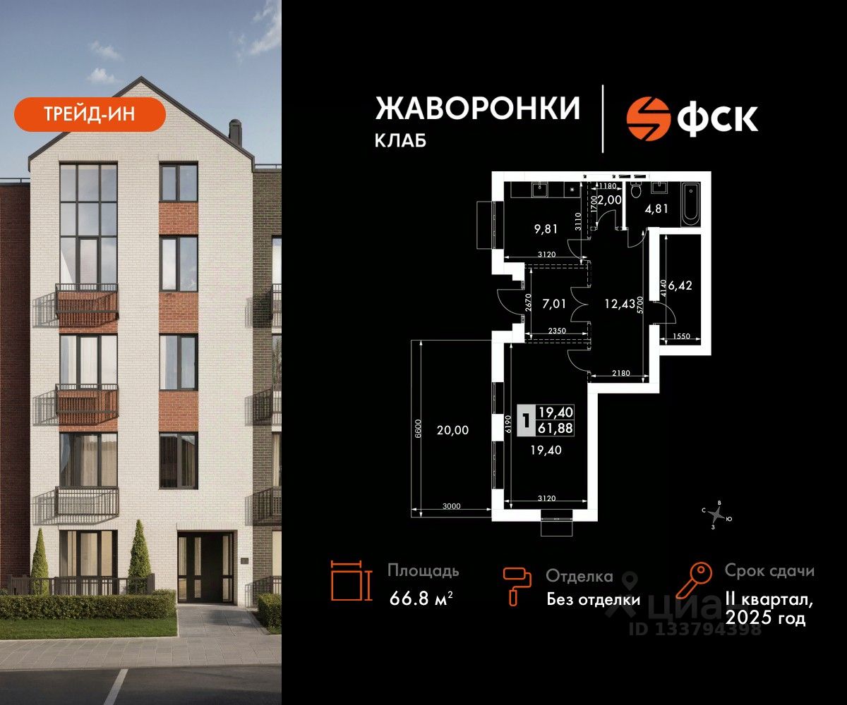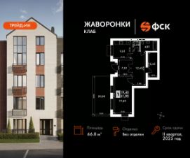 Продаётся 2-к квартира номер 3 в сданном корпусе общей площадью 66.8 кв.м на 1-м этаже 4 этажного дома.