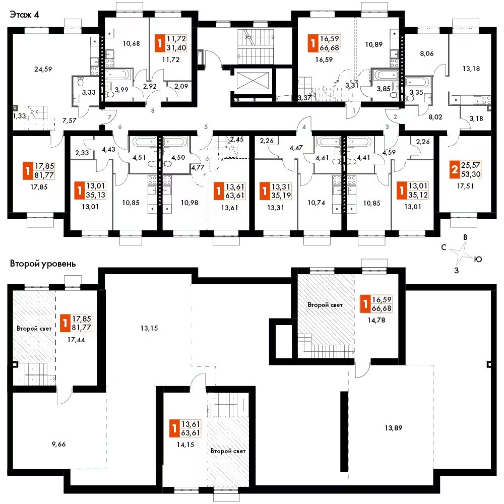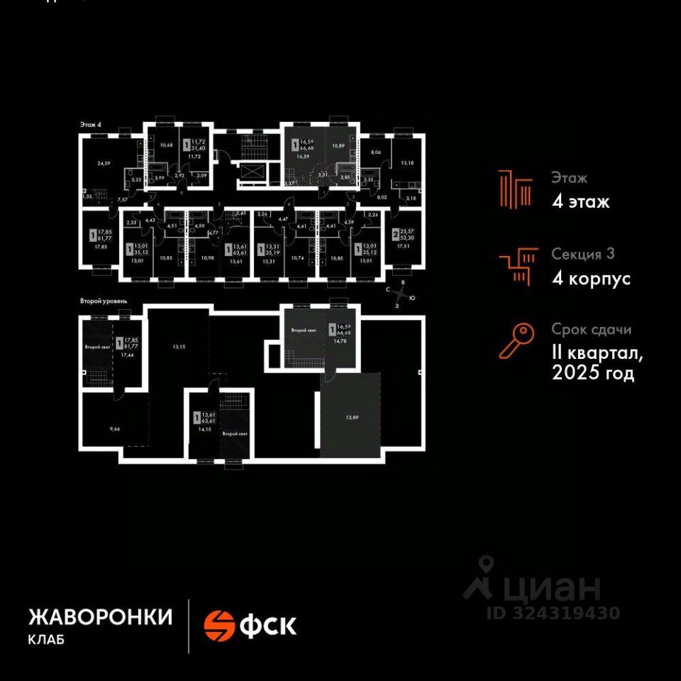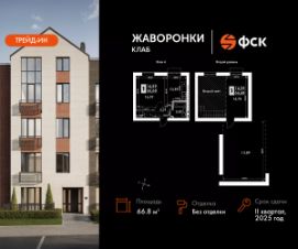 Продаётся 2-к квартира номер 75 в сданном корпусе общей площадью 66.8 кв.м на 4-м этаже 4 этажного дома.
