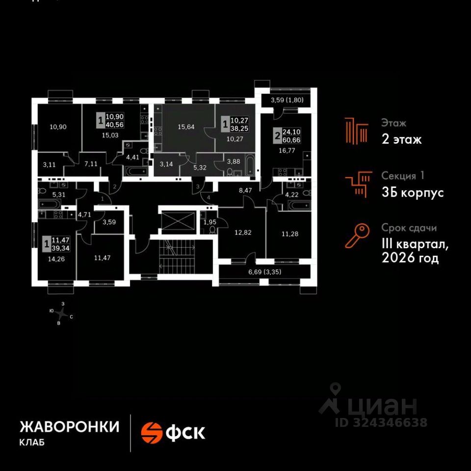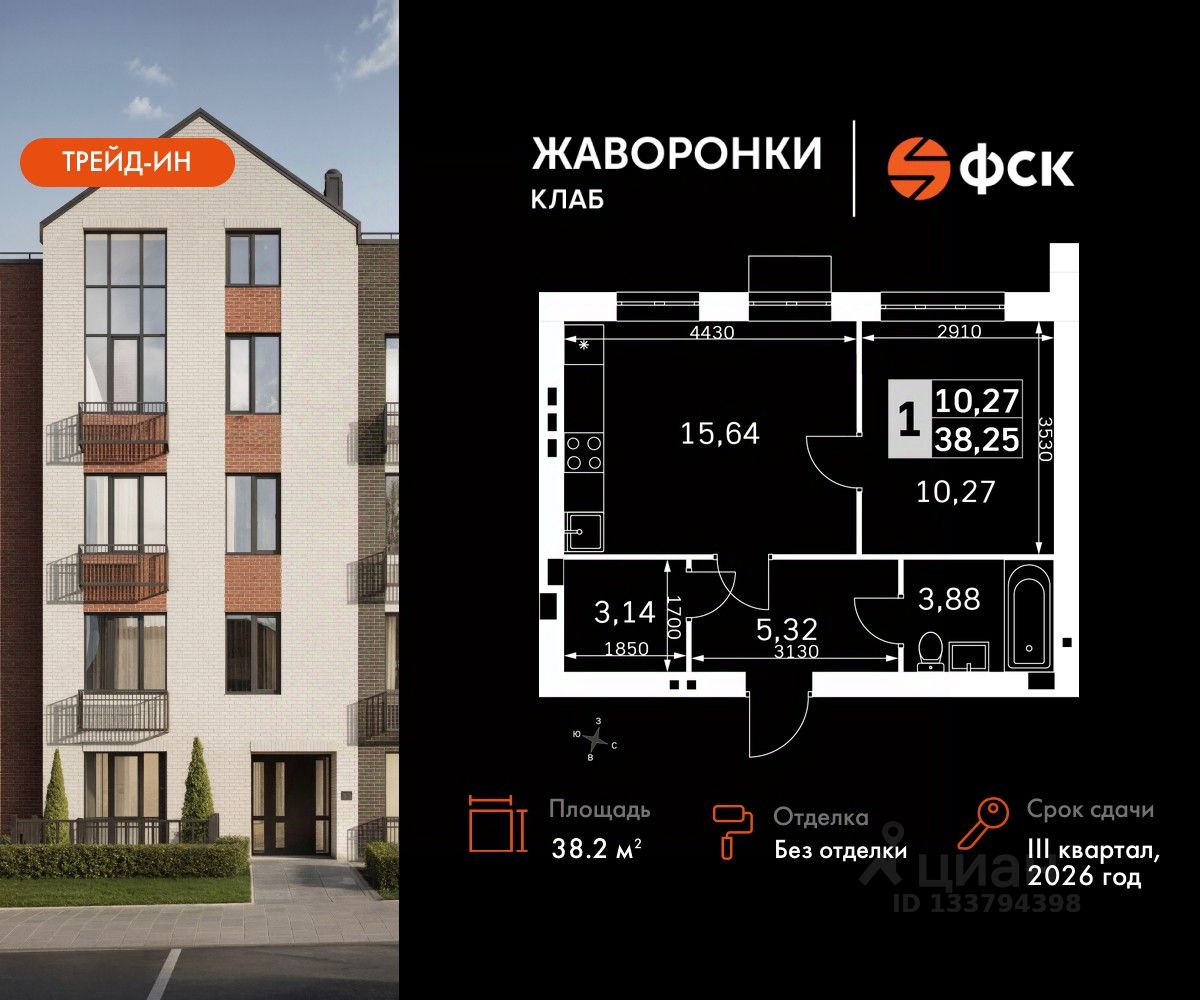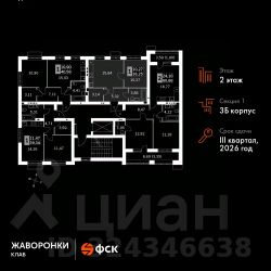 Продаётся 1-к квартира номер 5 общей площадью 38.25 кв.м на 2-м этаже 4 этажного дома. Без отделки.