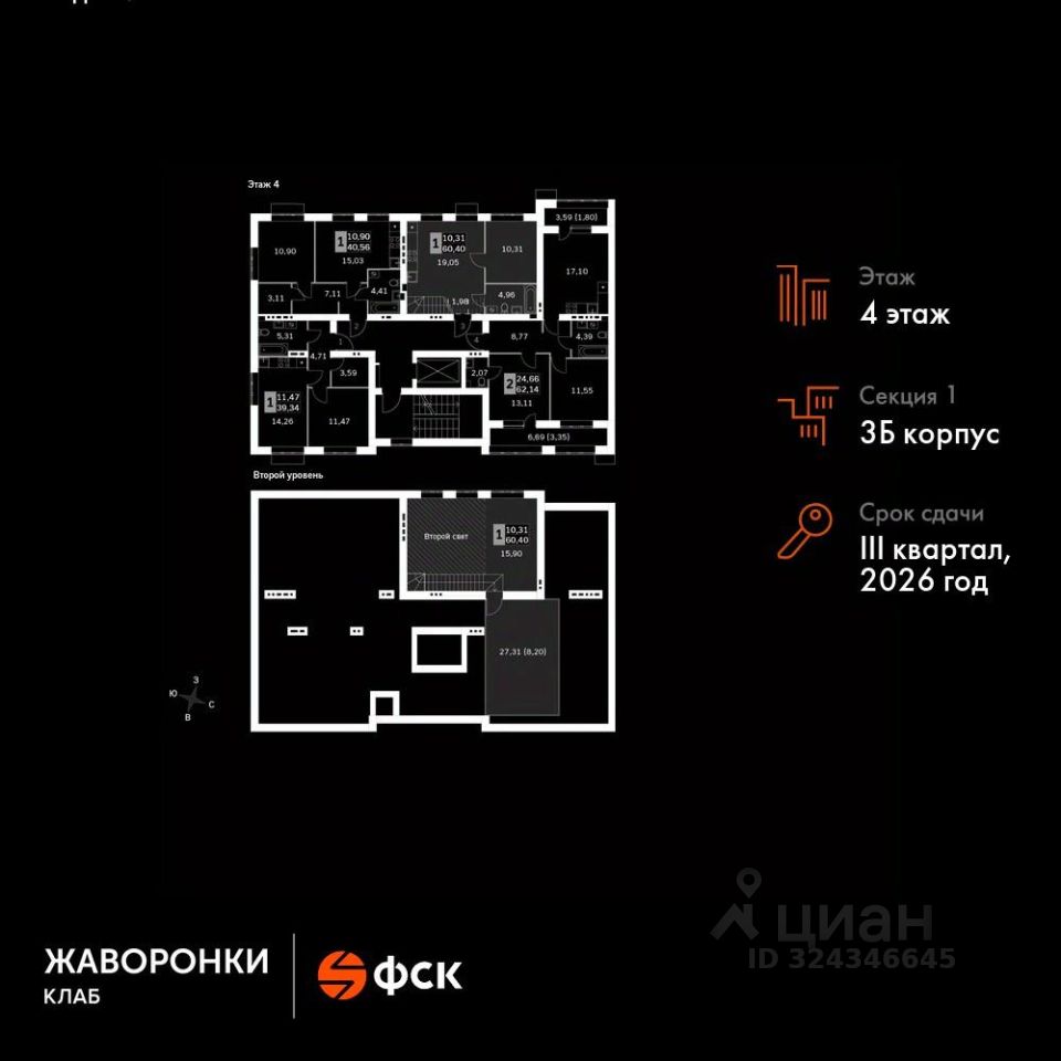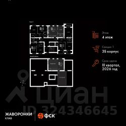 Продаётся 2-к квартира номер 13 общей площадью 60.4 кв.м на 4-м этаже 4 этажного дома. Без отделки.