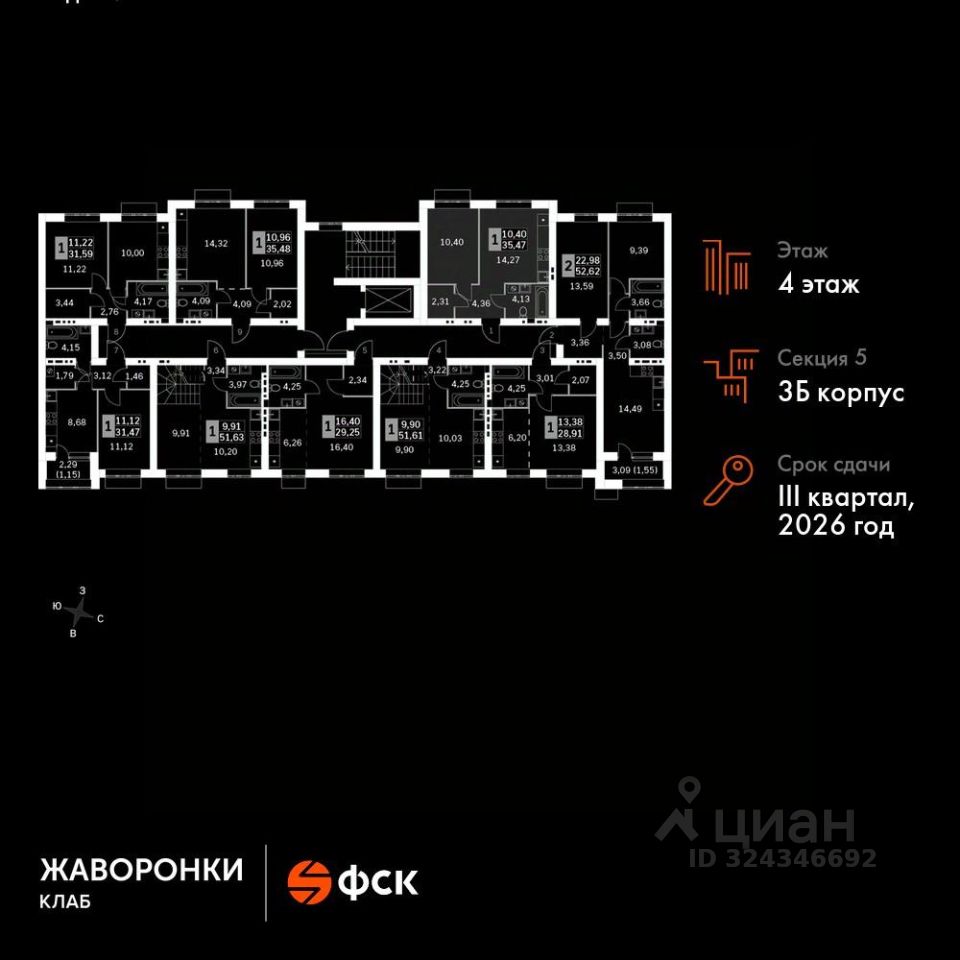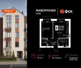 Продаётся 1-к квартира номер 96 общей площадью 35.47 кв.м на 4-м этаже 4 этажного дома. Без отделки.